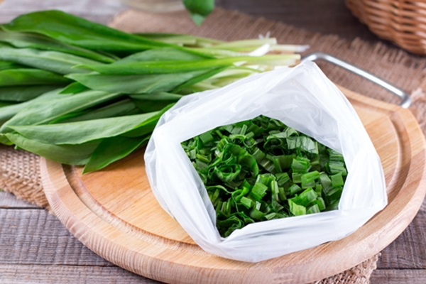 Черемша имеет сильный чесночный аромат, поэтому используйте как минимум два пакета. Желательно прикрепить к пакету этикетку, указав на ней название продукта и дату заморозки. Поместите пакеты с черемшой в морозильную камеру на хранение. Используйте для приготовления супов-пюре, ухи, как дополнение к начинке лепешек, пирогов и пирожков. Размораживать зелень перед приготовлением еды не обязательно.