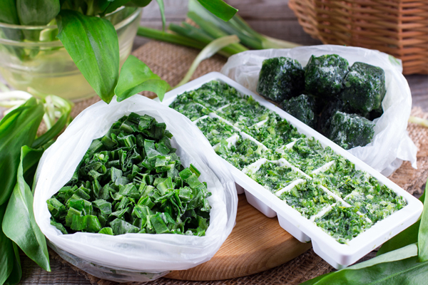 При наличии свободного места в морозильной камере, заморозка черемши не займет у вас много времени и труда. Для заморозки лучше взять свежесобранную черемшу с молодыми стеблями и ярко-зелеными листьями. Тщательно промойте растения под проточной водой, избавляясь от грязи и песка на листьях и у основания черешков, удаляя цветоносы. Заморозку черемши предлагаем произвести одним из трех способов – просто в измельченном виде, в виде кубиков или в виде кубиков со сливочным маслом.